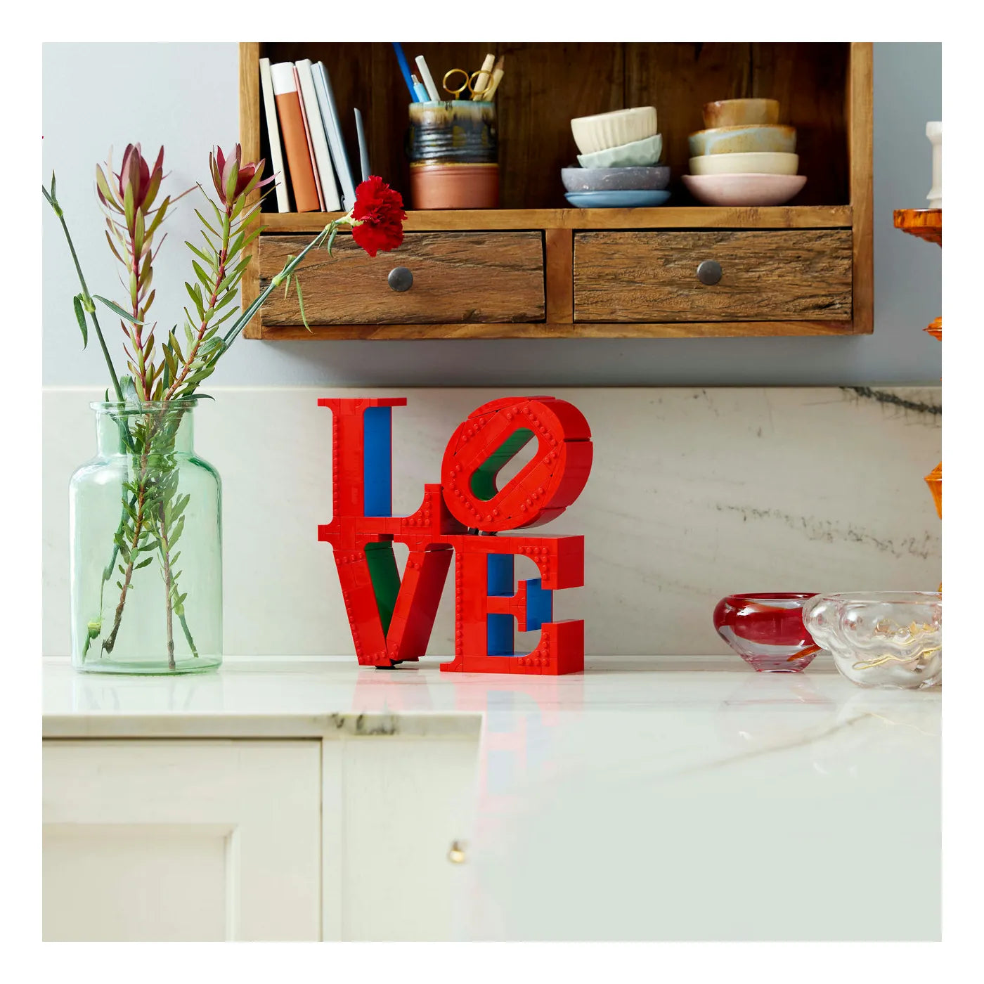 - LEGO® Wohn-Deko: Diese LEGO Interpretation der LOVE Skulptur ist ein imposanter Blickfang für jedes Zimmer