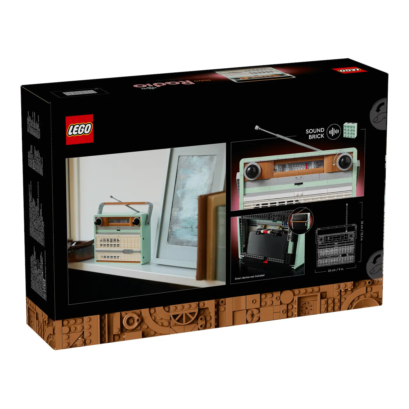 • Modell eines Retro-Transistorradios: Das LEGO® Icons Retro-Kofferradio ist ein Bauset für Erwachsene, das dich ein Transistorradio aus den 1970er-Jahren detailgetreu (und mit Smartphone-Fach!) nachbilden lässt. Freu dich auf typische Soundeffekte