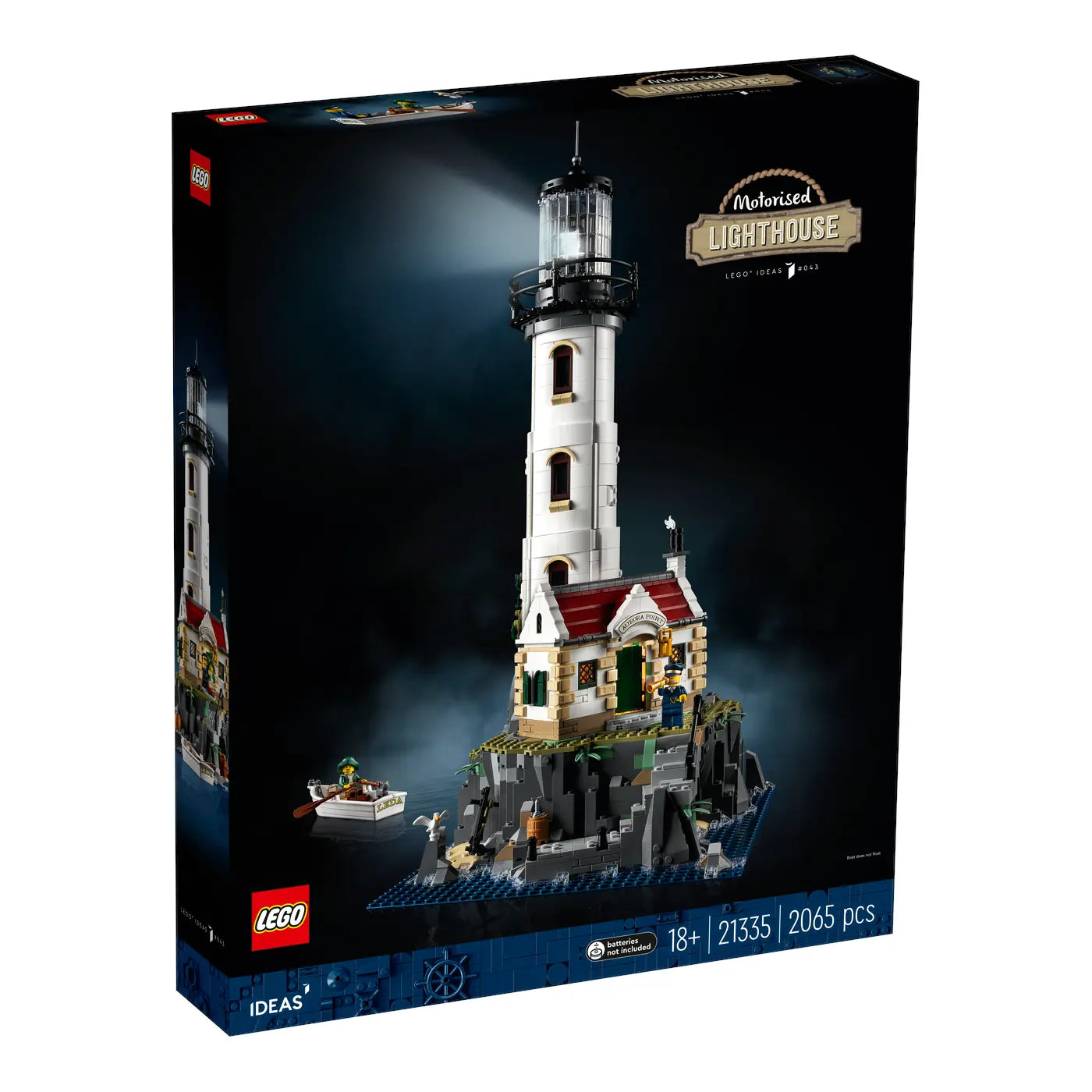 - Motorisierter Leuchtturm (21335) – ein Modell zum Ausstellen: Der detailgetreue Leuchtturm steht auf einer Felsnase mit Stufen und Landungssteg, Höhle und dem Häuschen des Leuchtturmwärters. Das Bauprojekt lässt dich deine kreative Seite ausleben