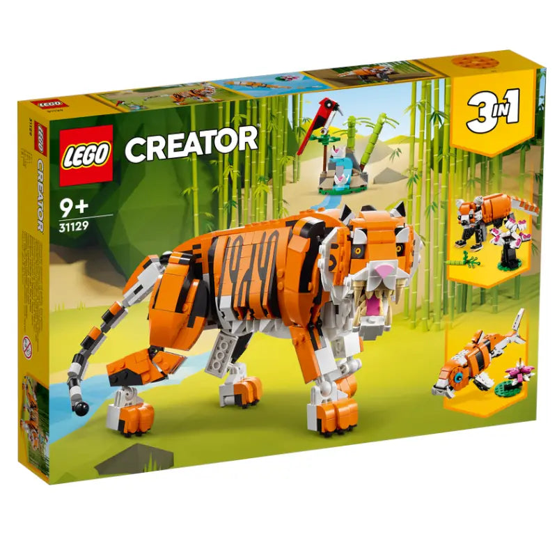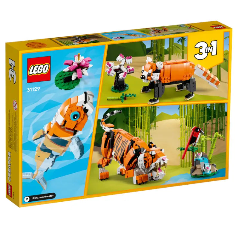 • 3 Spielzeugtiere in 1 Set: LEGO® Fans können unzählige Abenteuer mit dem Bauset „Majestätischer Tiger“ (31129) darstellen, das neben einem Spielzeugtiger auch einen roten Panda und einen Koi beinhaltet