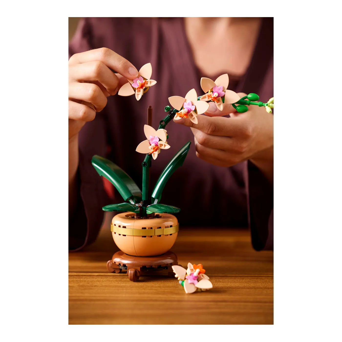 - Kreativer Blumenschmuck: Die LEGO® Botanicals Mini-Orchidee ist ein Bauset für Erwachsene, das aufstrebende Floristen eine spektakuläre LEGO Blume erschaffen und ausstellen lässt