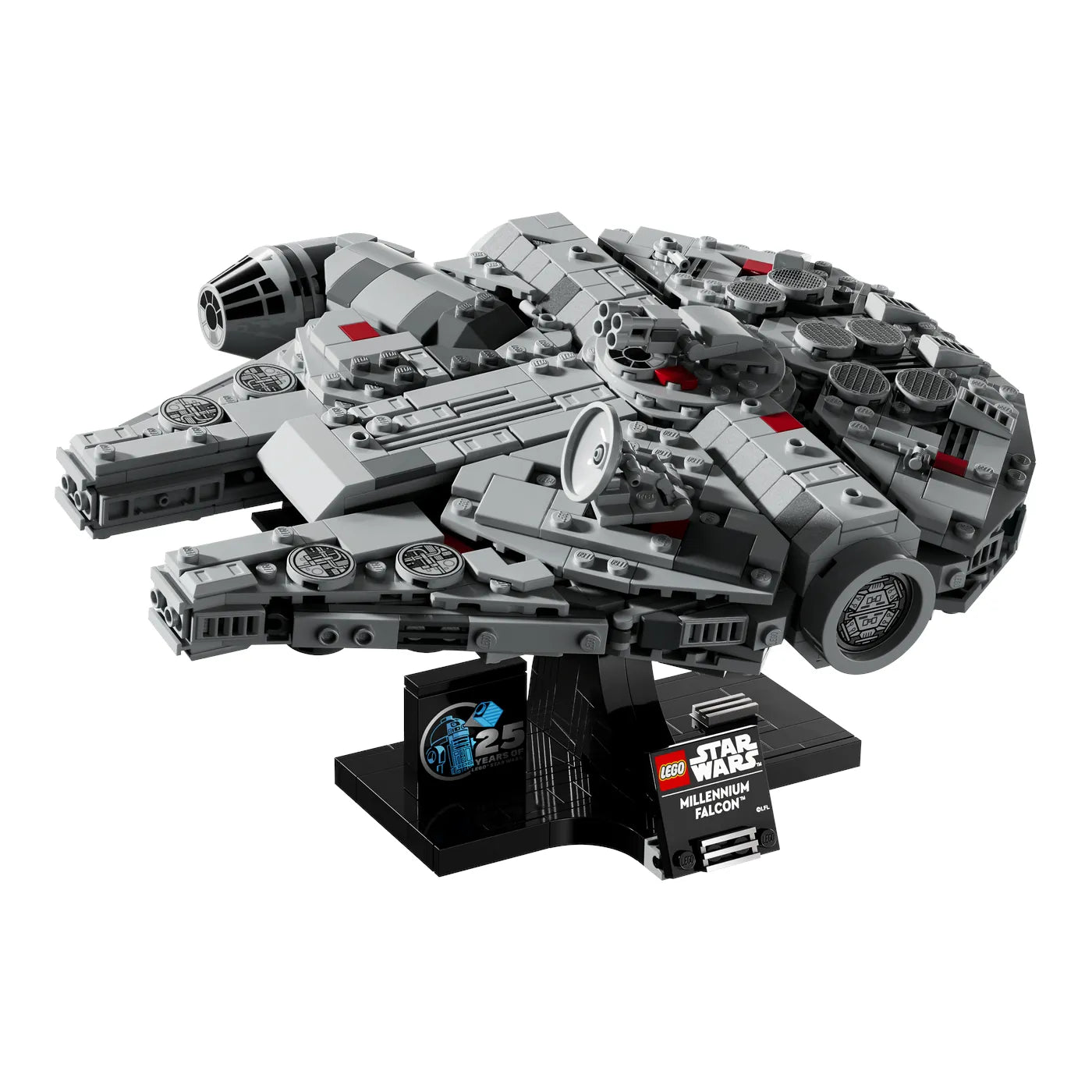 - Modell zum Ausstellen: Auf dem baubaren Ständer mit Namensschild und Stein zum 25-jährigen LEGO® Star Wars™ Jubiläum kann man den Millennium Falke in einem dynamischen Winkel ausstellen